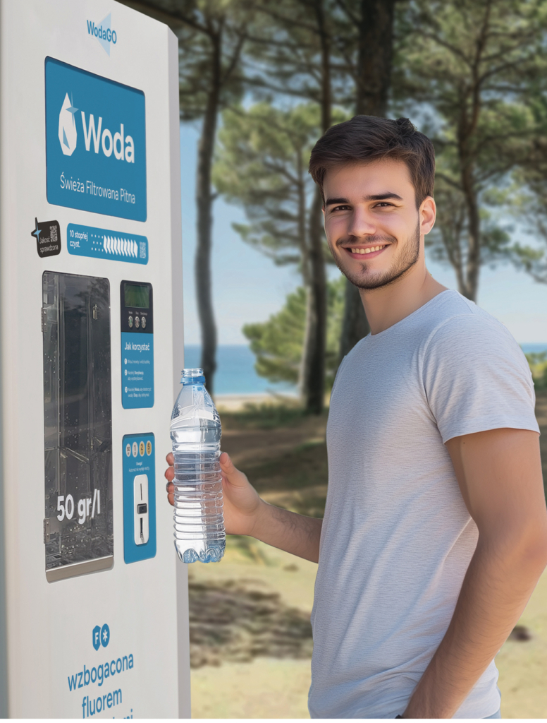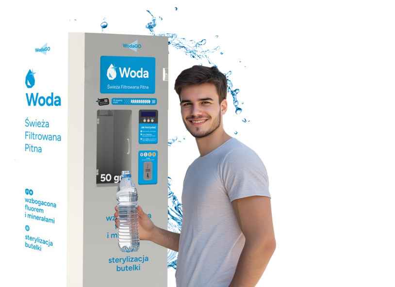 Automaty WodaGO pomagają ograniczyć zużycie jednorazowych butelek, zmniejszając ilość odpadów plastikowych trafiających do środowiska.