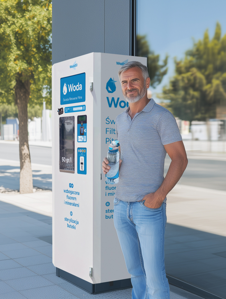 Nowoczesne urządzenie, które umożliwia zakup oczyszczonej wody o każdej porze dnia i nocy.